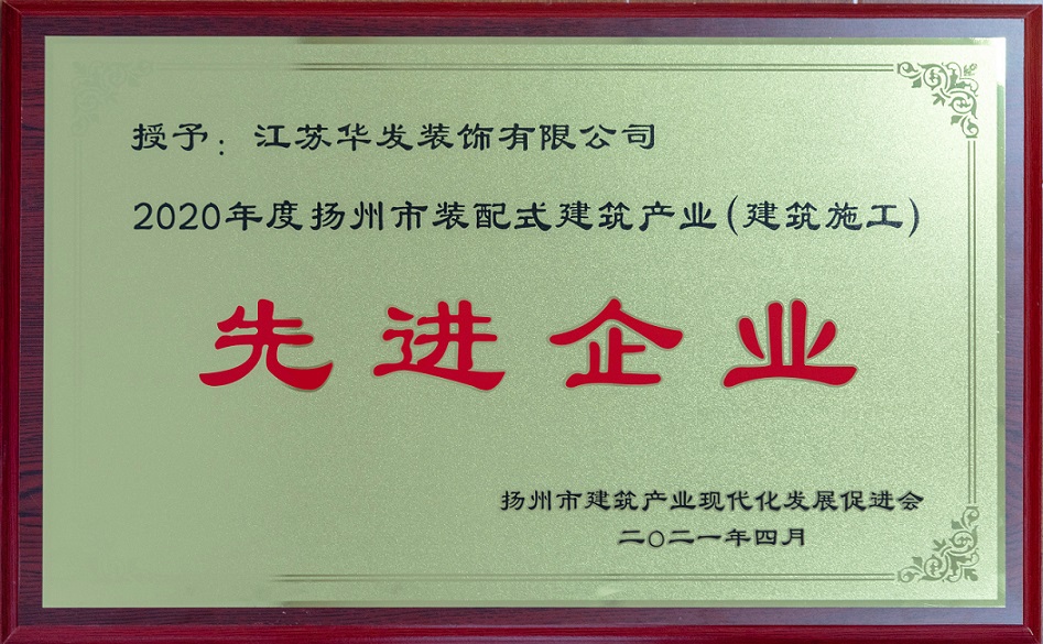 大會對2020年度揚州市建筑產業現代化先進企業、優秀項目和先進個人進行了表彰。公司獲2020年度揚州市裝配式建筑產業“先進企業”稱號,張春林獲“先進個人”表彰。